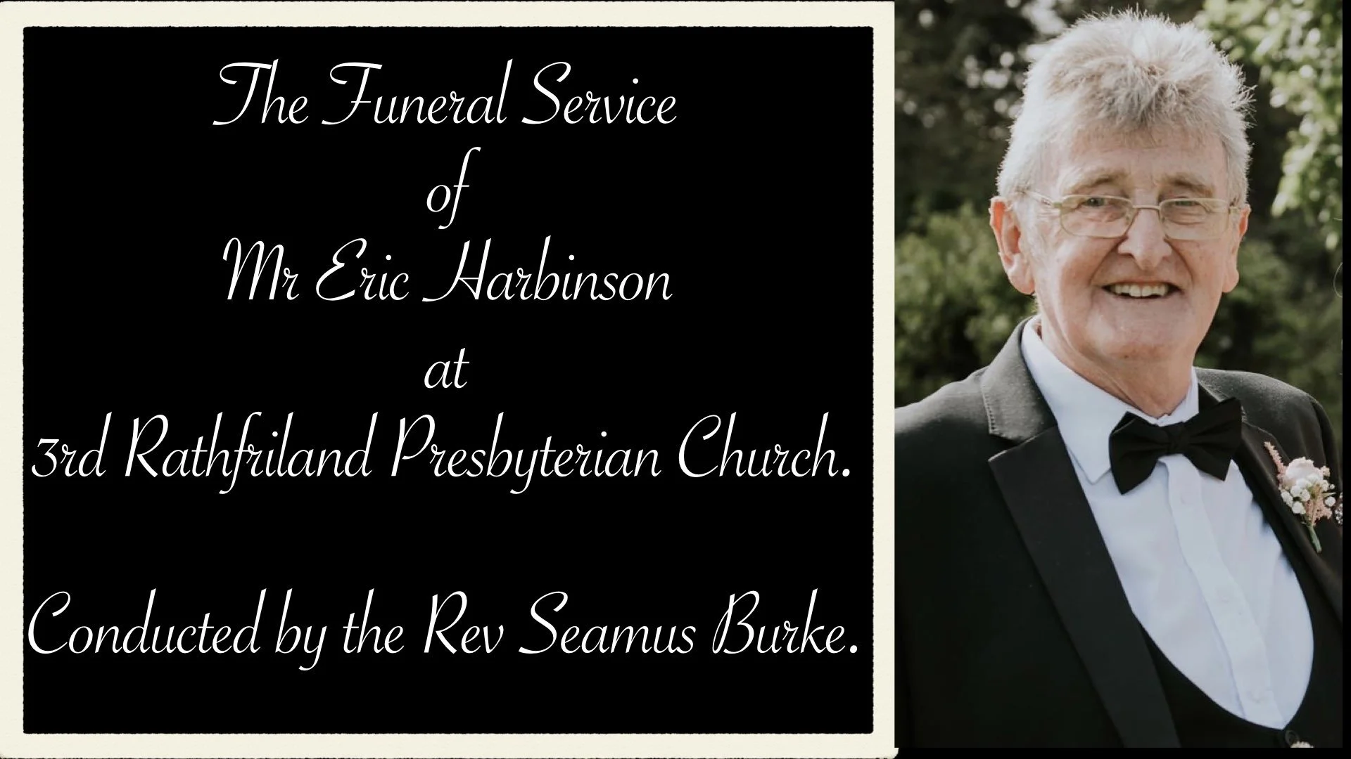 Mr Eric Harbinson Mar 6 Written By Seamus Burke Name - Mr Eric HarbinsonAddress - Ballynamagna RathfrilandDate - 6th February 2022 Seamus Burke